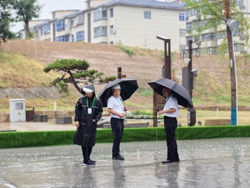 一場(chǎng)大雨來(lái)襲,每一位安全守護(hù)者如同無(wú)畏的哨兵,穿梭在項(xiàng)目的每一個(gè)角落,進(jìn)行著雨中巡場(chǎng)。雨珠沿著安全帽的帽檐滑落,模糊了視線,卻清晰了他們的責(zé)任與使命。