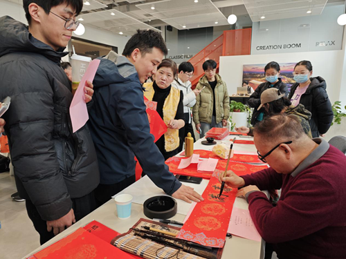 活動(dòng)當(dāng)天,鄭州市文聯(lián)的書(shū)法家們受邀來(lái)到現(xiàn)場(chǎng)。他們個(gè)個(gè)精神飽滿,手執(zhí)毛筆,在一張張紅紙上揮灑自如,書(shū)寫(xiě)著寓意深遠(yuǎn)的新年序言。這些序言既是對(duì)過(guò)去一年的總結(jié),也是對(duì)新年的美好期許。書(shū)法家們的精彩表演贏得了現(xiàn)場(chǎng)觀眾的連連稱贊,租戶們紛紛表示:“書(shū)法家們寫(xiě)的字真是太好了!‘福’字看著就喜慶,春聯(lián)的寓意也都非常美好。”