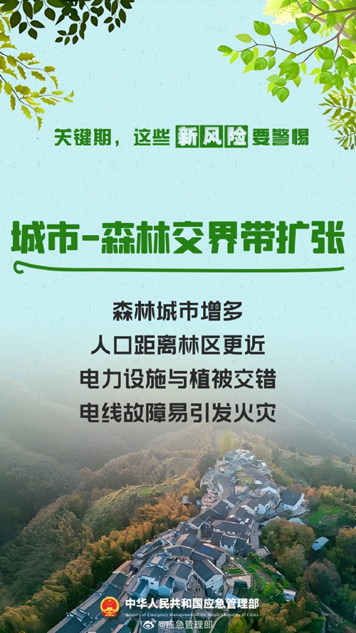陽春三月,春意盎然。春季氣溫逐漸升高,降水偏少,大風天氣增多。伴隨春耕生產(chǎn)、踏青祭祀等生產(chǎn)生活用火增多,森林火災風險增高。近期,多地陸續(xù)進入春季森林防火關鍵期,以下新風險要警惕!