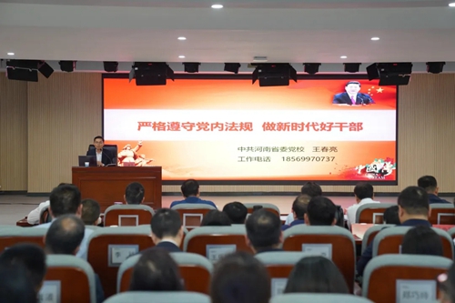 集團黨委邀請河南省委黨校中共黨史教研部王春亮副教授,以《嚴格遵守黨內(nèi)法規(guī) 做新時代好干部》為題展開宣講。王教授分別從紀律嚴明是黨的光榮傳統(tǒng)和獨特優(yōu)勢、黨員干部嚴格遵守黨內(nèi)法規(guī)的迫切性和做嚴守黨內(nèi)法規(guī)好干部的主要著力點三個方面宣講,號召全體黨員干部要以黨紀學習教育為契機,上好黨性鍛煉“必修課”。