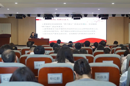 市紀委監(jiān)委駐城發(fā)集團紀檢監(jiān)察組副組長姬小靜,以《做遵規(guī)守紀的明白人》為題,分別從《條例》的歷史沿革、修訂意義、新變化和特點等方面,逐章逐條深度解讀新修訂的《中國共產(chǎn)黨紀律處分條例》。深刻領(lǐng)悟全面從嚴治黨的實踐要求,切實學出政治忠誠、學出清正廉潔、學出擔當作為。