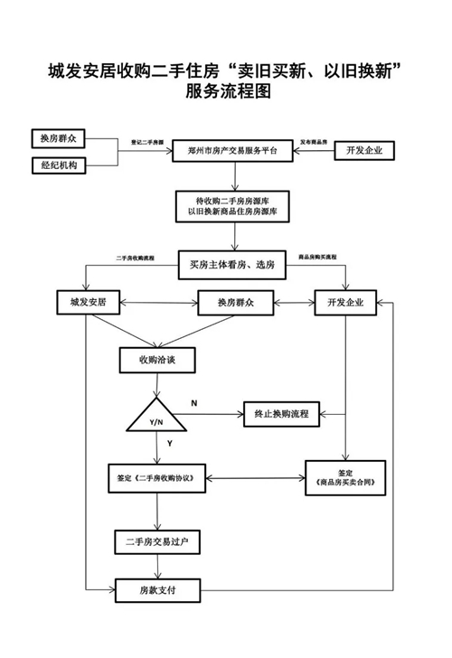 換房群眾可自主選擇通過“鄭州市房產(chǎn)交易服務(wù)平臺(tái)”或其它渠道掛牌出售二手住房、選購新建商品住房,自由交易實(shí)現(xiàn)“賣舊買新、以舊換新”。(二手住房不受城發(fā)安居公司收購條件限制、新建商品住房須位于主城區(qū)范圍內(nèi))