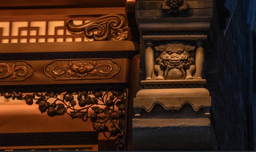 12號(hào)樓主題為獅子,主題來源于三門峽靈寶函谷關(guān),象征“事事如意”的獅子在柱子、平板枋、額枋、卡子花、假梁頭等構(gòu)件均有出現(xiàn)。