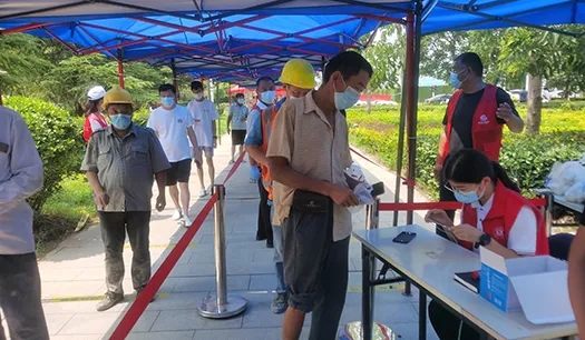 由于龍湖社區(qū)內(nèi)工地數(shù)量多,人員流動性大,檢測人群普遍年齡偏大,給檢測工作著實帶來一定難度。尤其是有一位工友,左腿受傷骨折,打著石膏拄著拐杖來做檢測,他沒有拿身份證且隨行人員都不會熟練操作手機掃碼,但在志愿者的引導下,從帶領他走愛心通道、到協(xié)助錄入信息、幫助他們?nèi)私仄亮舸嬉约白罱K完成檢測,志愿者認真的工作態(tài)度得到了工友和社區(qū)工作者的高度贊揚。檢測期間,志愿小隊統(tǒng)一按照社區(qū)的調(diào)度安排,各司其職,專人專崗,一切行動聽指揮,做到了各環(huán)節(jié)專人負責和快速反饋,整體檢測工作快速有序的進行,僅在15日一天,社區(qū)就完成了4000余人次的檢測。來自龍湖社區(qū)的居民表示,第四次核酸檢測相較于前幾次效率明顯提高且秩序良好,從最初的半個小時以上到現(xiàn)在的幾分鐘,這不僅是效率質(zhì)變,更是廣大一線工作人員的付出心血,大家都非常感謝他們。